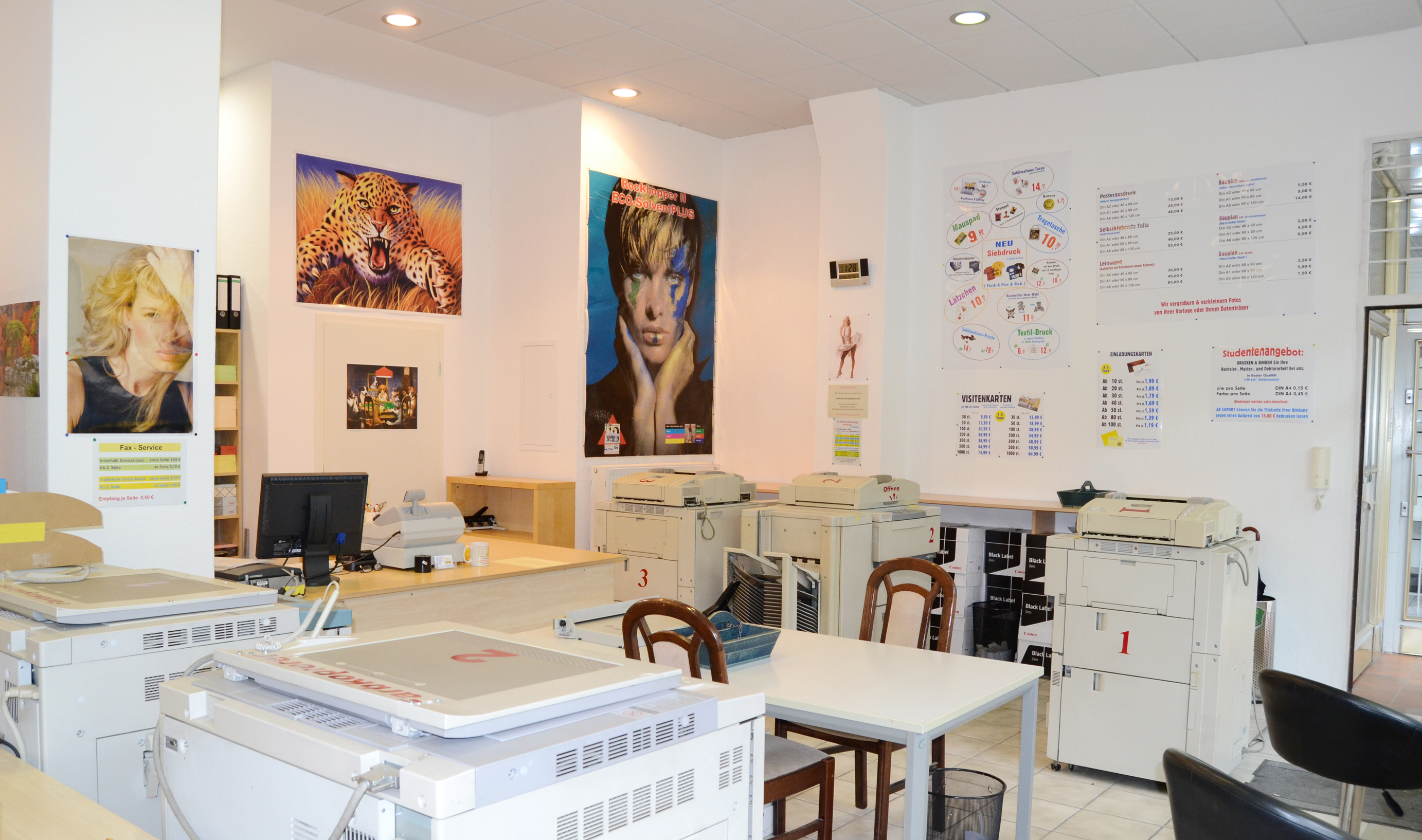 Fotokopien SW/Farbe / Plotten & Scannen bis DIN A0 / Laminieren bis DIN A0 / DigitaldruckTextil-/Flock-/Flex-/Sieb-Druck / Mauspad-/Puzzle-/Tassen-Druck / Beschriftungen / Visitenkarten Bindungen aller Art / Faxdienst / Buttonsu.v.m.,