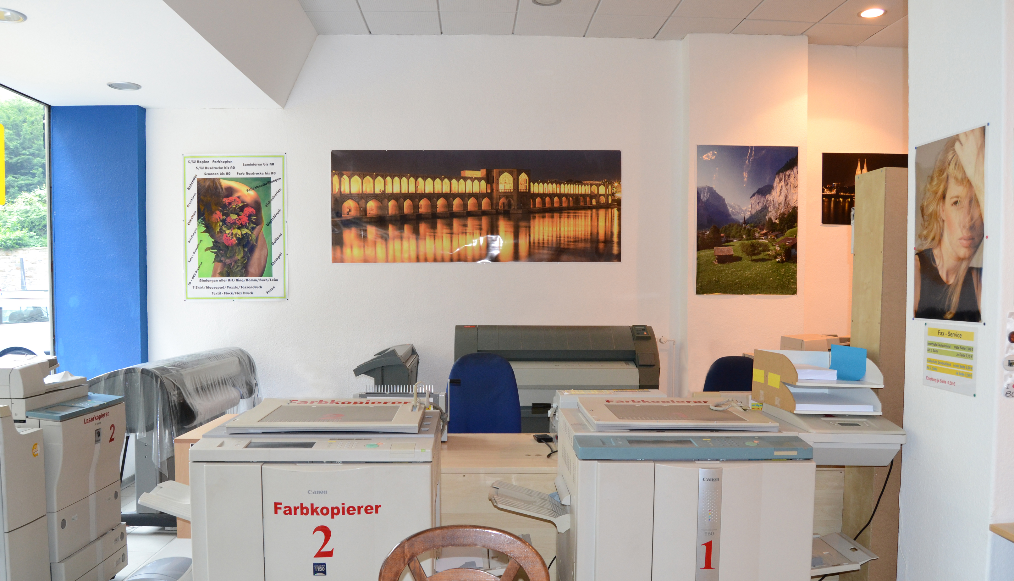 Brillante Qualität wird durch unsere Canon S/W Laserkopierer bzw. Canon CLC Farb Laserkopierer garantiert, dabei sind beidseitiges Kopieren bis DIN A3 und eine Zoomfunktion von 25 - 400 % selbstverständlich.